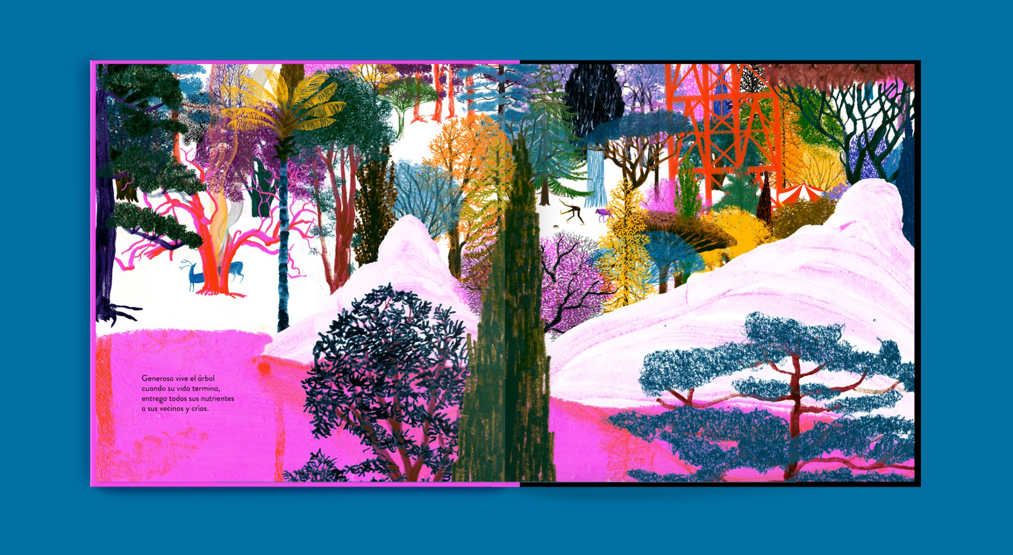 This book shows with poetry and illustration how the trees of the forest share their food, come together to protect themselves, take care of their weakest individuals. They learned a precious life lesson a long time ago.